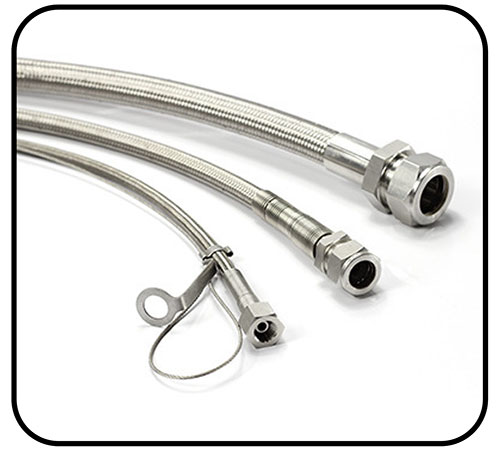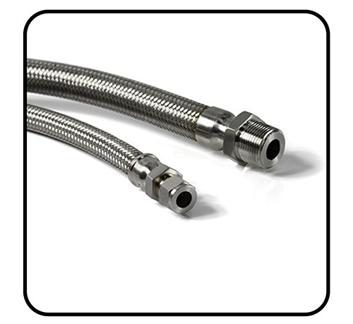 ท่ออ่อนสแตนเลส FLEXIBLE HOSES มีให้เลือกใช้งานเช่น ท่อถักแกนสแตนเลส 316L หุ้มด้วยสแตนเลส 304 ขนาดท่อตั้งแต่ 1/4 ถึง 1 นิ้ว แรงดันการทำงานสูงสุดถึง 3100 psig (213 บาร์)อุณหภูมิในการทำงานตั้งแต่ -325℉ ถึง 850℉ (-200℃ ถึง 454℃)