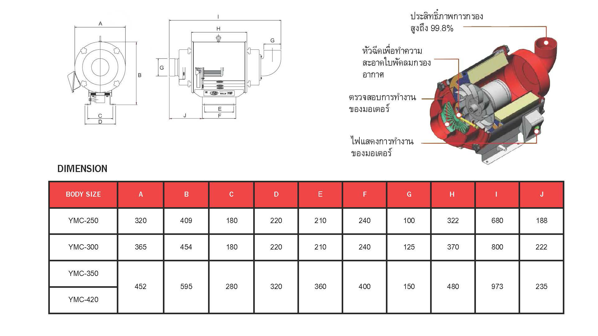 YHB Oil Mist collector เครื่องดักจับละอองน้ำมันถูกออกแบบ และใช้งานในเครื่องเจียรนัยโลหะมายาวนานกว่า 30 ปี และมียอดขายสูงสุดอันดับหนึ่ง มากกว่า 20,000 เครื่องต่อปีในทั่วโลก สินค้ามุ่งเน้นเพื่อลดการฟุ้งกระจายของน้ำมันในอากาศ ทำให้โรงงานมีสิ่งแวดล้อมที่สะอาด, ปลอดภัยต่อผู้ปฏิบัติงานจากการหายใจหรือสัมผัสกับน้ำมันขึ้นรูปโลหะ ทำให้อากาศอยู่ในเกณฑ์มาตรฐาน ลดปัญหางานซ่อมบำรุง และชิ้นงาน และพื้นที่ต้องทำความสะอาด